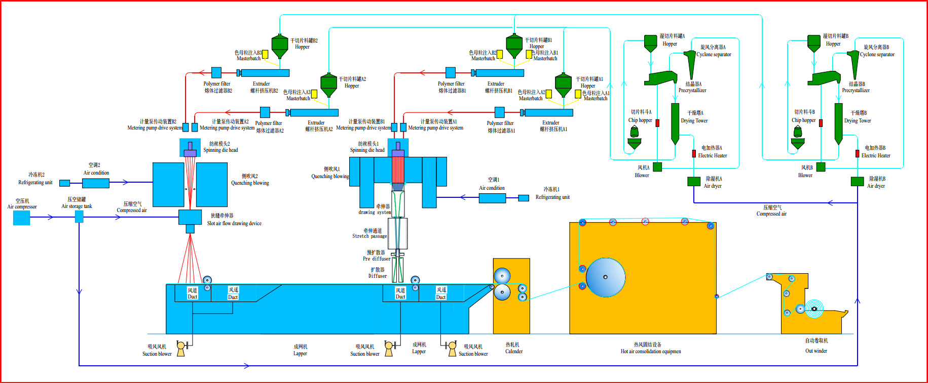 Bico spunbond air through bonding production line